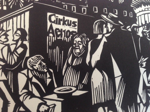 Ausgewählte Holzschnitte aus Conrad Felixmüllers "Ich sah und schnitt in Holz" von insgesamt 41 Holzschnitten dieses Zyklus.